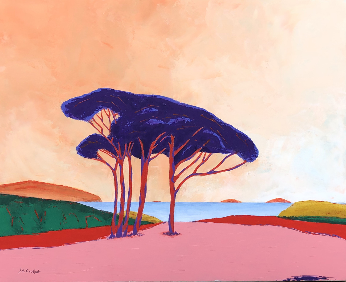 La peinture de Jean-Vincent Escalant est définitivement le reflet de sa liberté d’artiste. Il n’hésite pas à adopter différents styles au gré des thèmes qu’ils développent autours de ses émotions. Ses portraits puissants aux couleurs vives et ciselés par le trait, ses cités et gratte-ciel moins colorés laisse toujours la puissance du trait exprimer ses émotions.